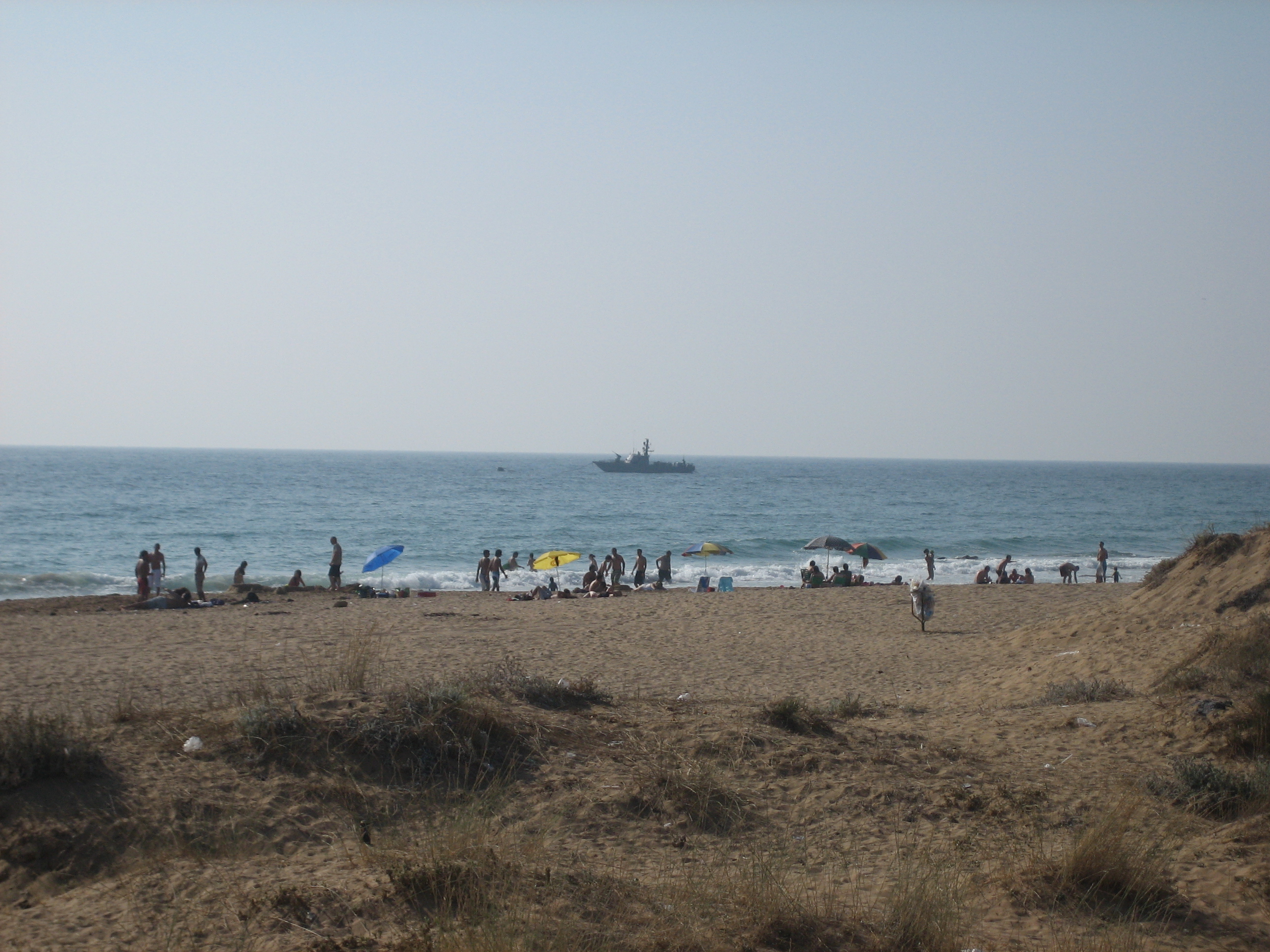 this is the beach at the bottom of Rosh Hanikra...note the gunboat...it was very safe.