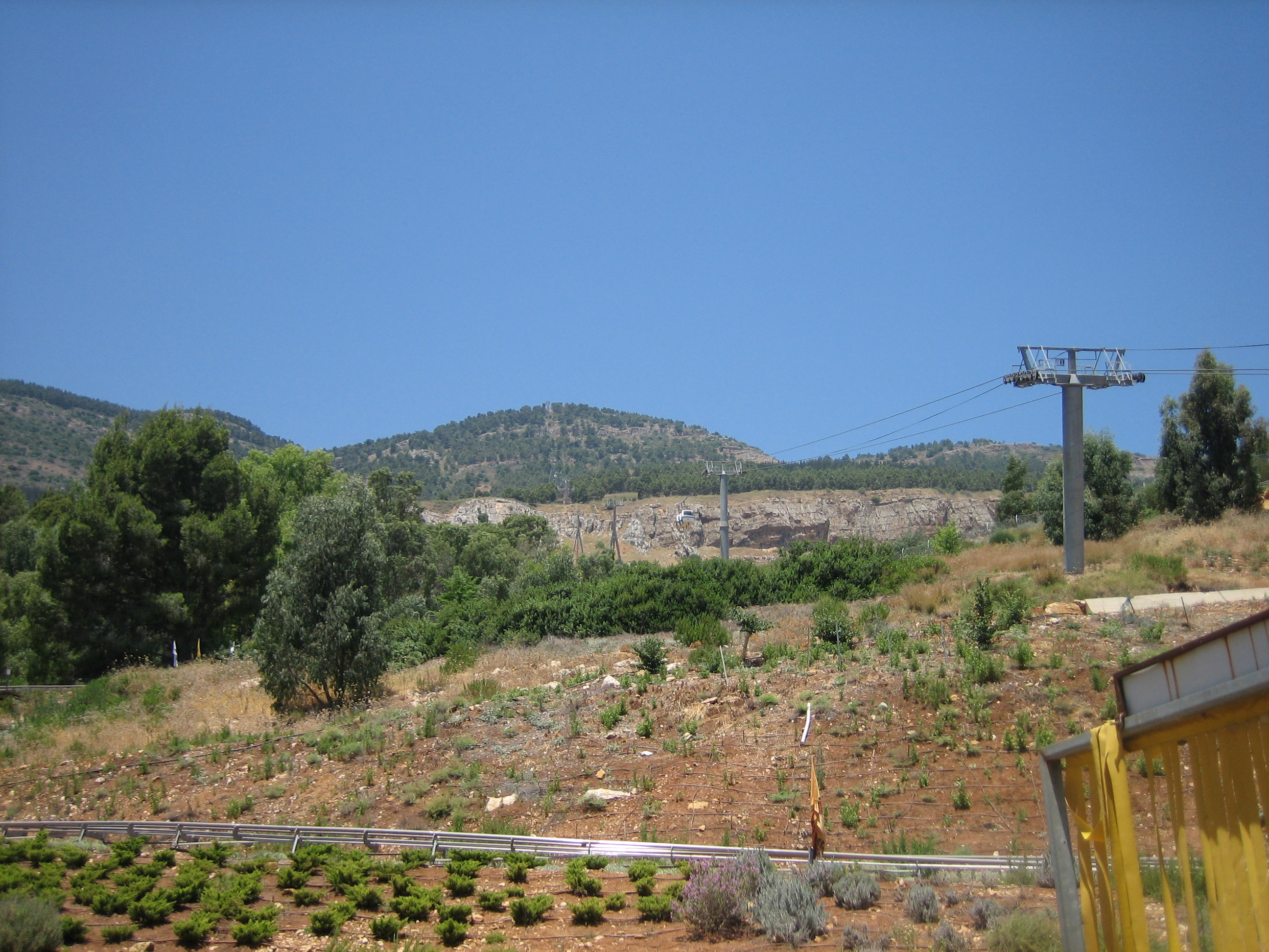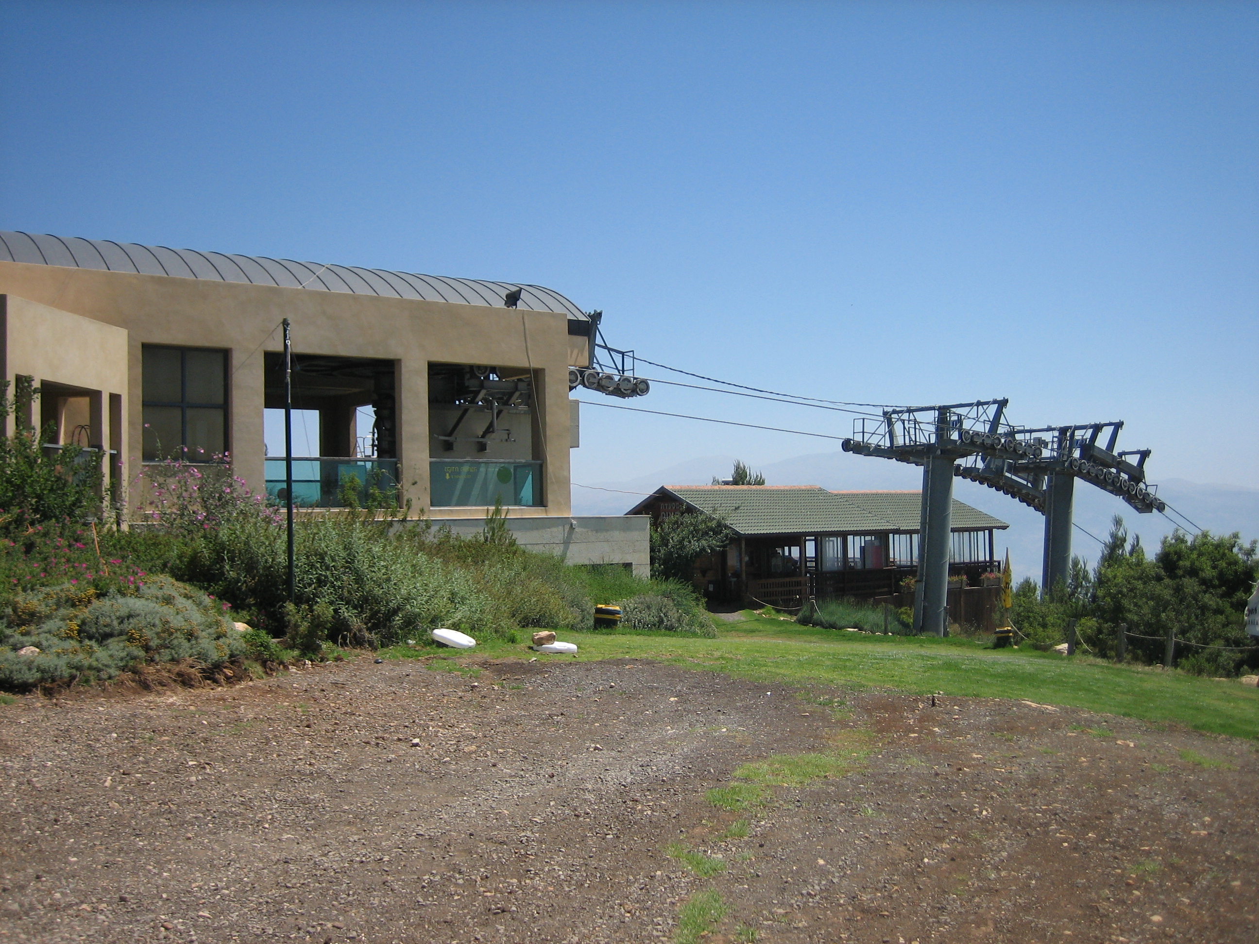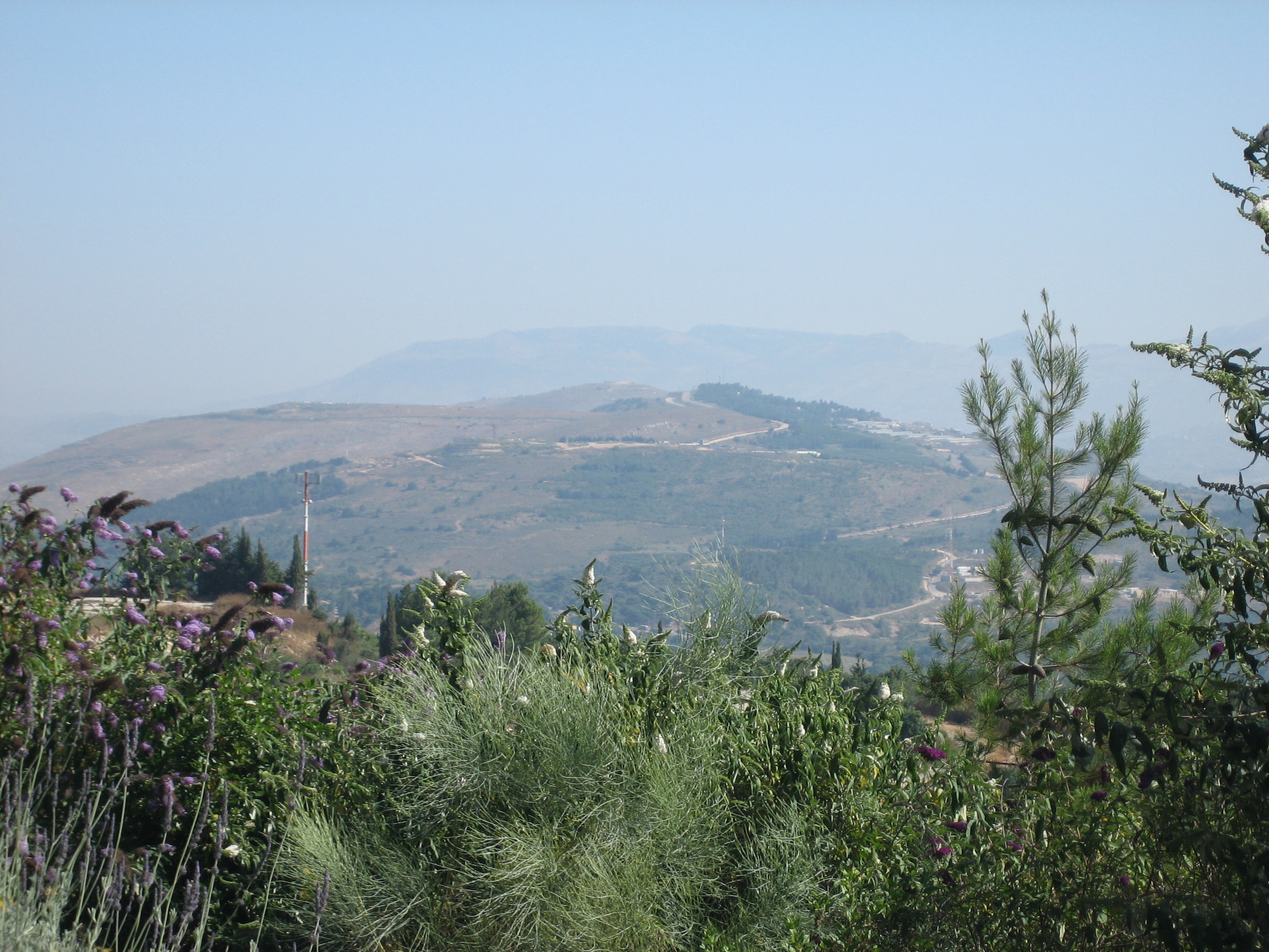 Our hotel at Kibbutz Manara on the left, our rental car, to the right, the Lebanese border over the hill